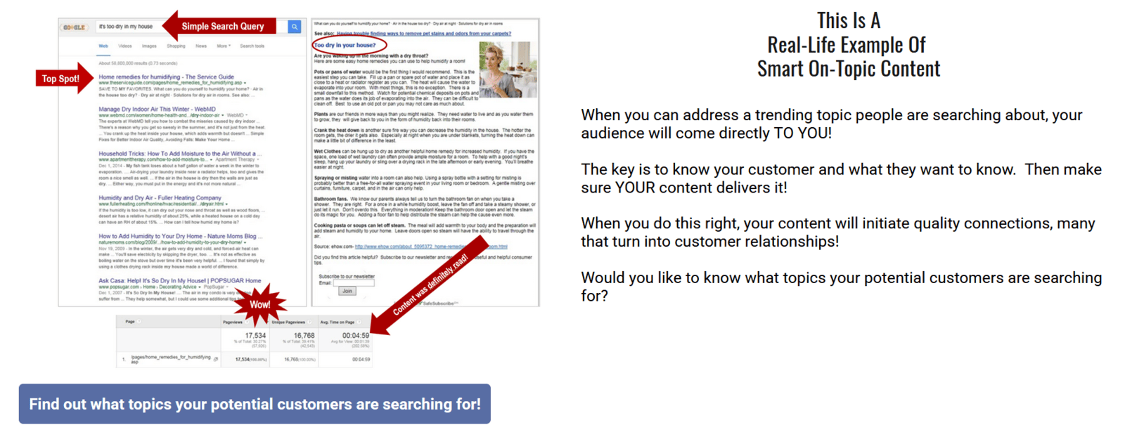 For example, we watch analytics, plus we review heat maps of your content page(s) to see exactly where visitors are spending their time.